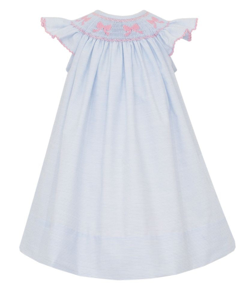 Petite Bebe Girls Blue Striped Smocked Pink Bows Bishop Dress