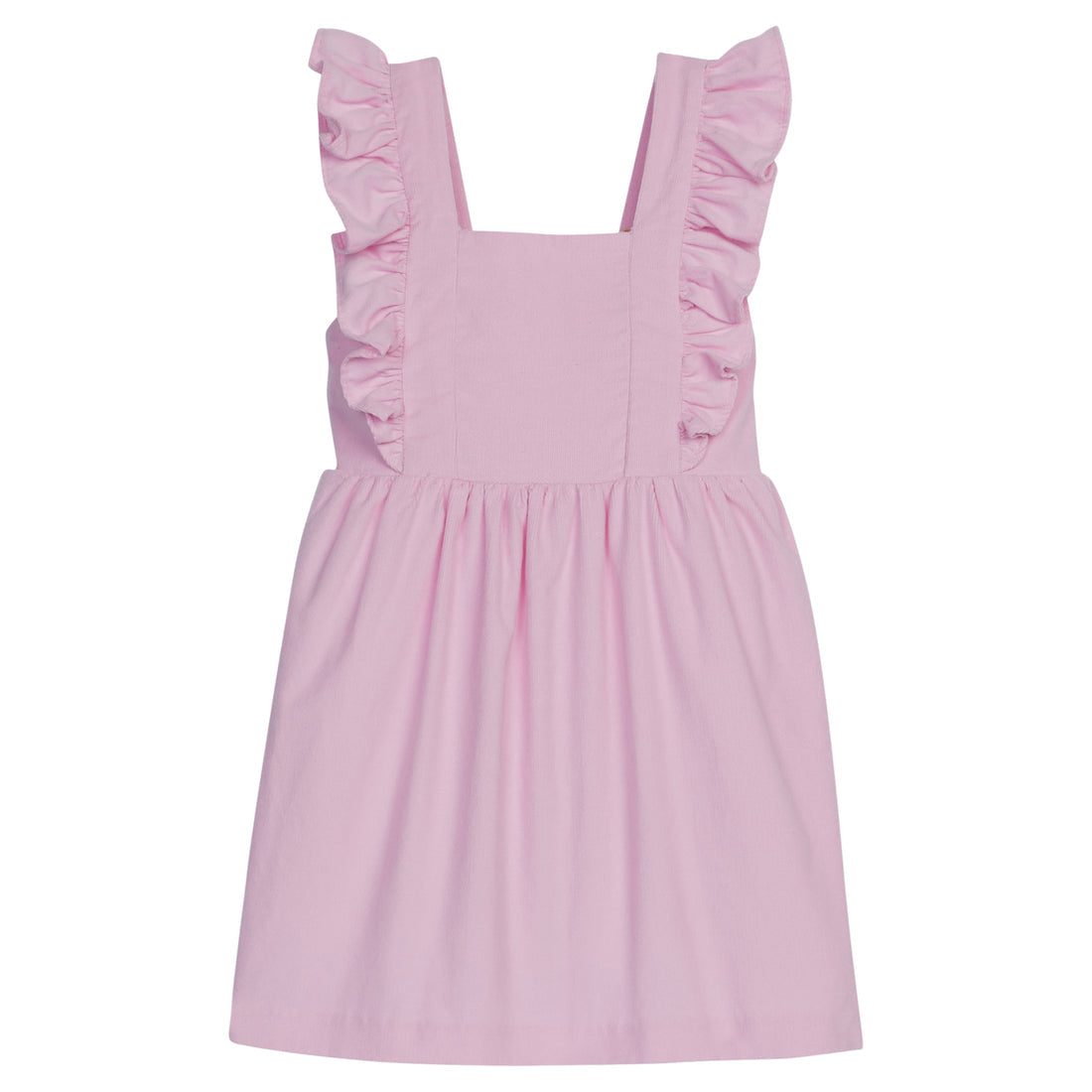 The Junie Jumper is a classic corduroy jumper for girls, featuring crisscross straps with a ruffle detail.  This style can be layered over a variety of tops, including many of our signature Printed Turtlenecks.  Try styling this Light Pink Corduroy with our printed Turtleneck - Belle Starr and add a monogram for an extra personal touch!