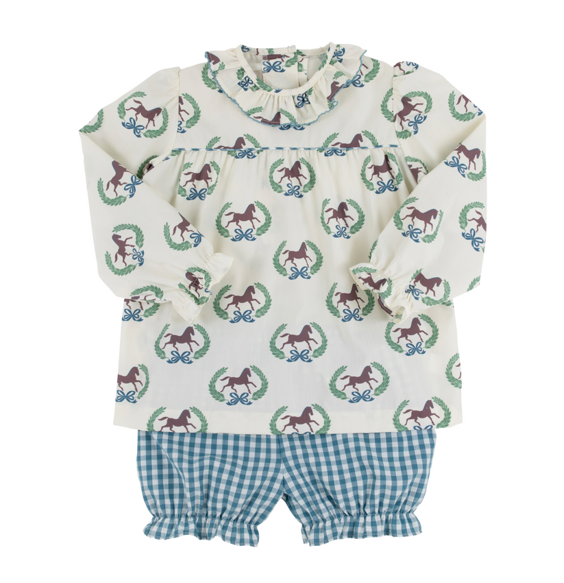 The Beaufort Bonnet Bon Air Bloomer Set - Highland Horse/Barnsley Gingham