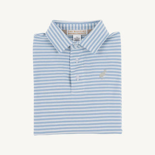 Beaufort Bonnet Long Sleeve Prim and Proper Polo in Barrington Blue Stripe with Keeneland Khaki Stork