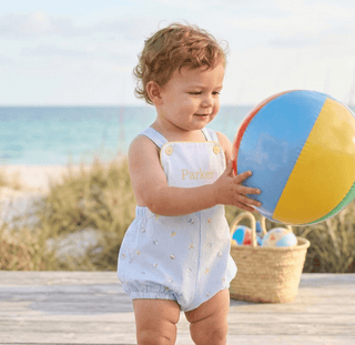 The Beaufort Bonnet Company Skipper Sunsuit Saddle Ridge Stripe with Worth Avenue White