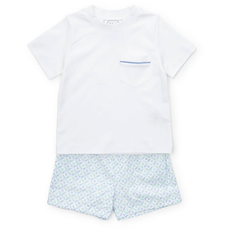 Boys' Pima Cotton Short Set. Shirt has contrast piping on the pocket. Shorts are woven Pima Cotton.