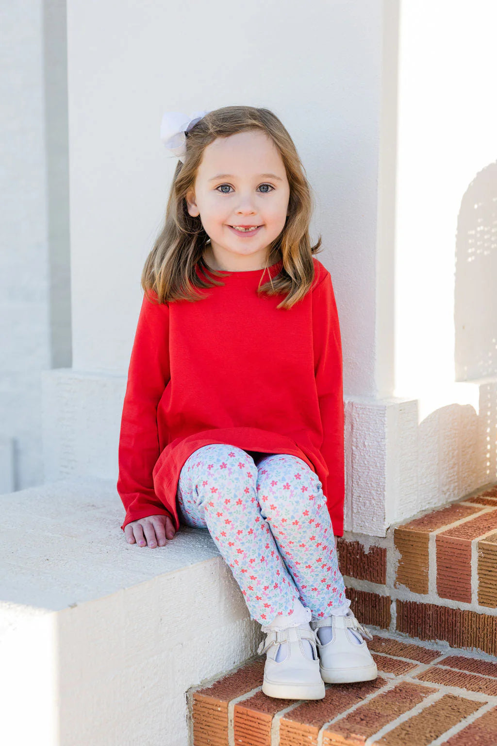 This adorable two-piece set features a charming peplum top paired with matching leggings, bringing a delightful pop of color and style to your little girl's fall wardrobe. The Full Bloom print captures the season's sweetness while the playful peplum detail adds just the right amount of flair for twirling and playtime.