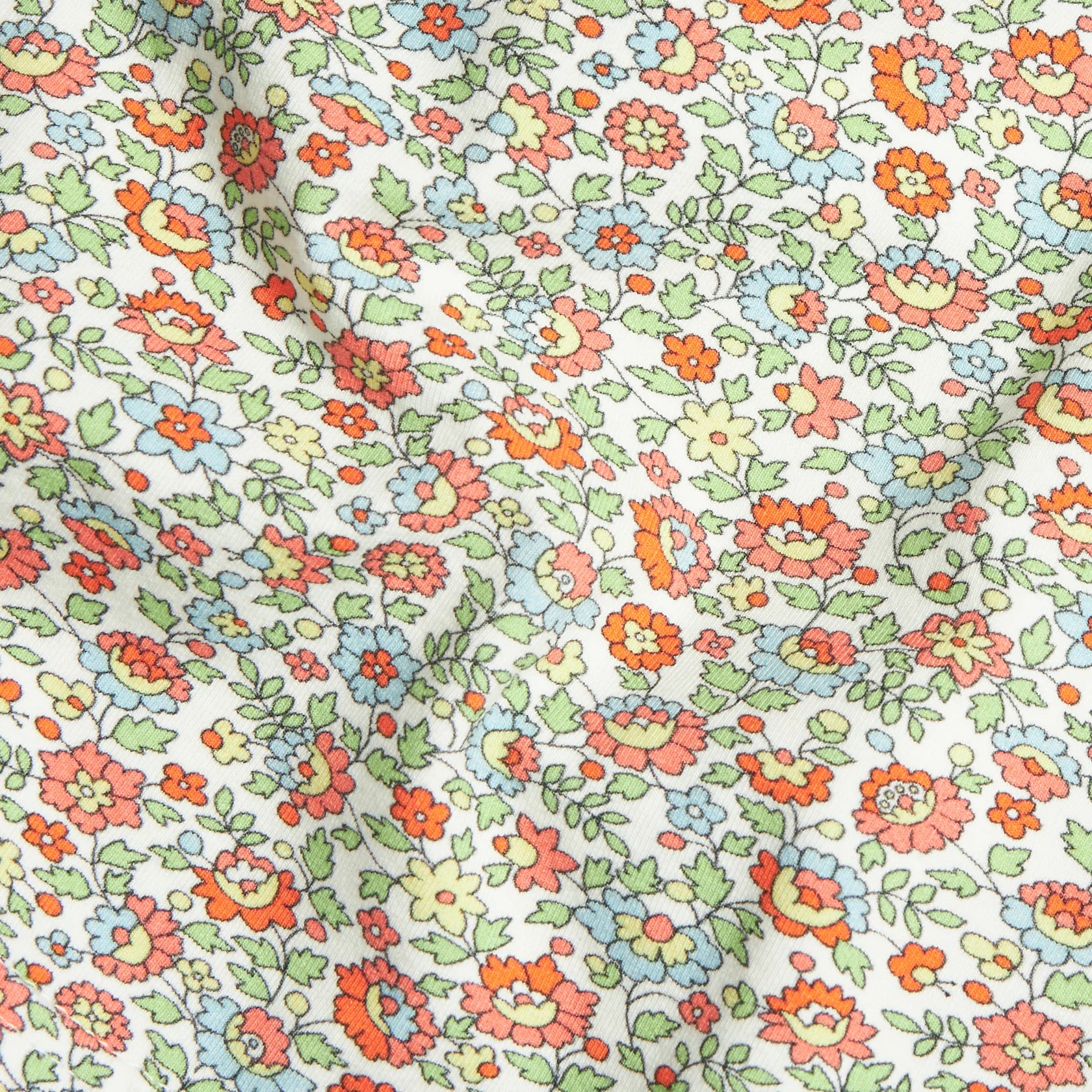 Meet James, a bright, happy floral in shades of blue, orange, and yellow! Our Evelyn Bubble is a classic Little English style that's extra cute with sky blue piping across at the chest and on the peter pan collar. This soft knit bubble is perfect for play and big sister can perfectly match in our Evelyn Dress - James Floral.