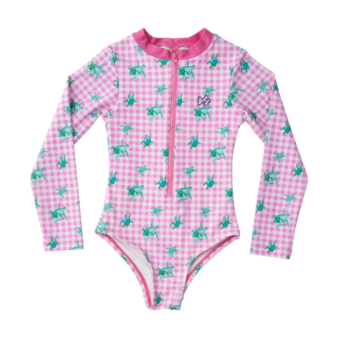 Prodoh- Girls' One Piece Swimsuit in Fuchsia Pink Gingham Turtle Print