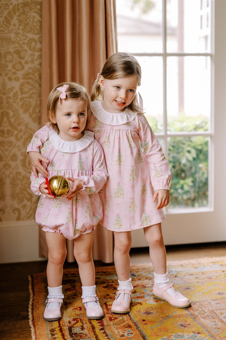 We are happy to introduce the happiest holiday print, and it's exclusive to us. The Pink Tinsel Collection is sweet and festive! Dress your girls in pink.